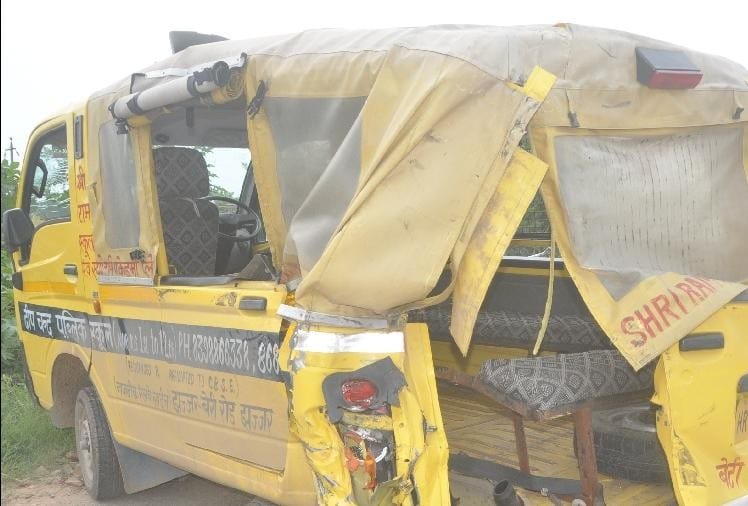 झज्जरः सड़क पार करते समय कैंटर और स्कूल वैन में टक्कर, 12 छात्र घायल